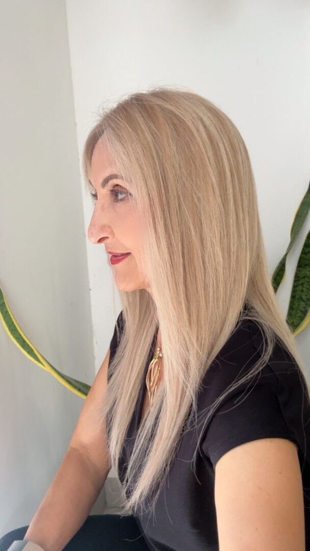 Puedes alaciarla, ondularla o cambiarle el peinado según tu gusto, tal como lo harías con tu propio cabello.