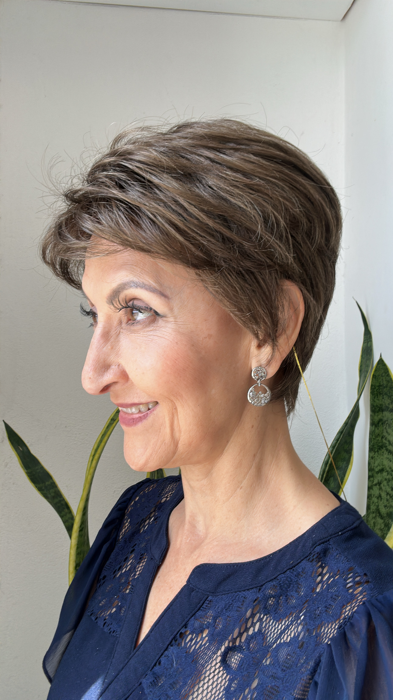 Peluca de fibra sintética. Esta elegante peluca presenta un diseño de gorra elaborada a máquina para proporcionar un volumen instantáneo. Este estilo clásico proporciona una silueta elegante. No utilice herramientas de calor en ella ni use tintes en ella.
