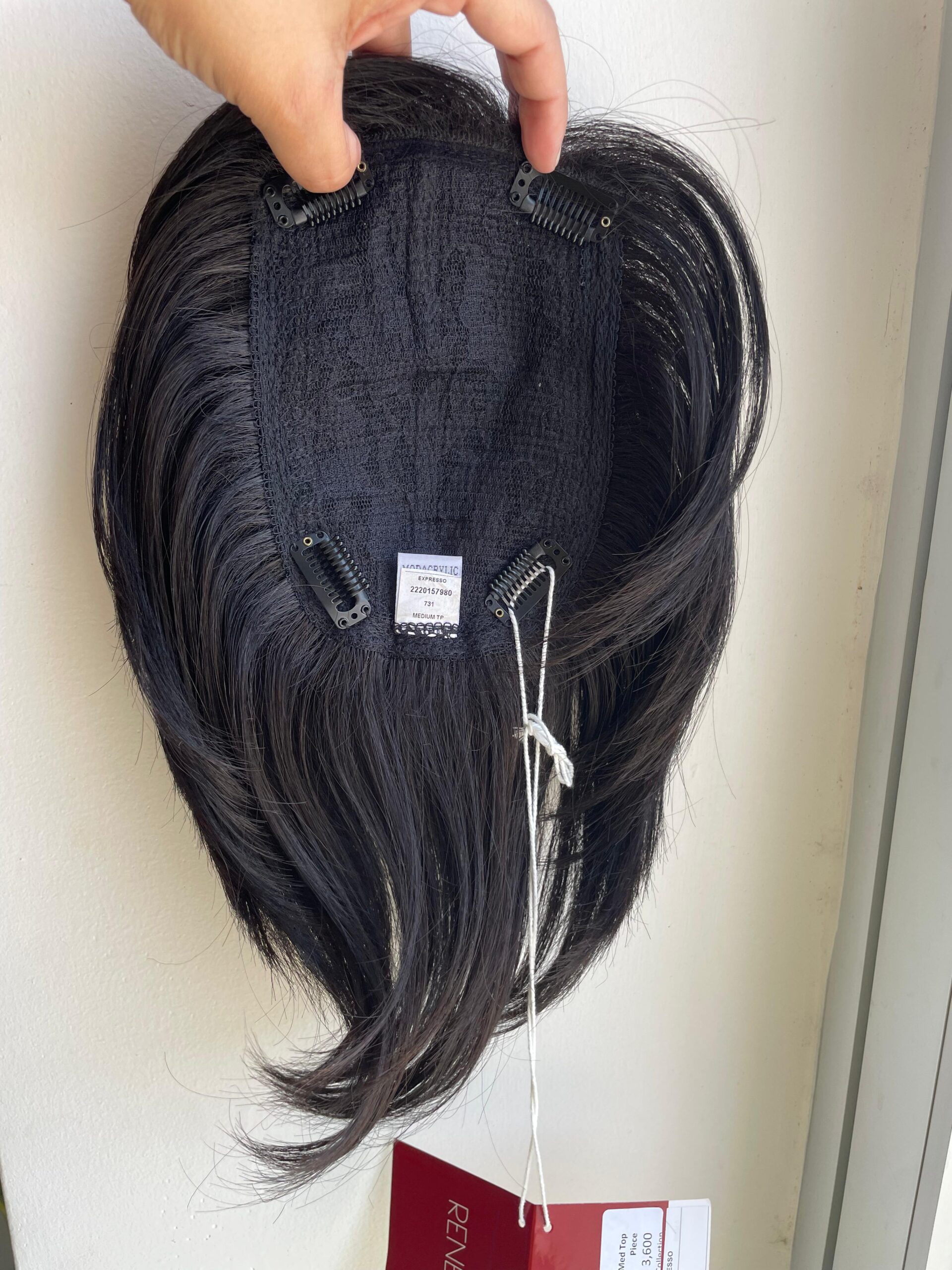 Topper de cabello sintético, de media longitud y estilo lacio. Está diseñado para dar más volumen y densidad al cabello, logrando un acabado natural y elegante.