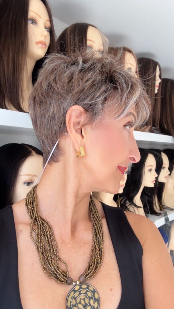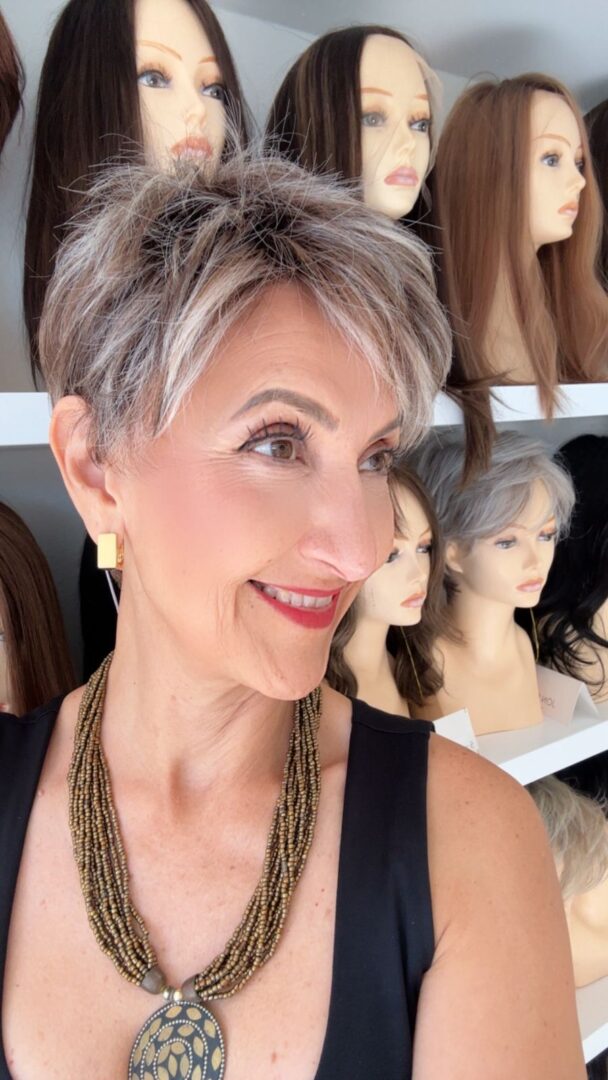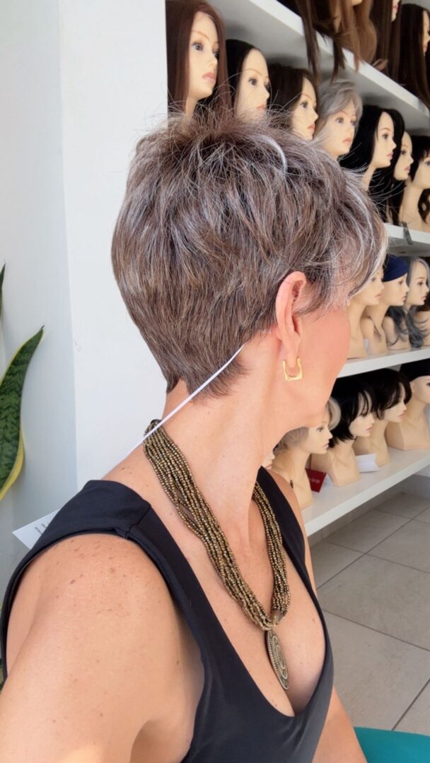 Rin es una peluca corta de fibra HD que puedes peinar con calor. Tiene un corte pixie con textura y un flequillo más largo que le da un look moderno y elegante.